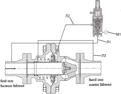 Схема соединения задающее устройства ЗУ-3 с регулятором давления типа РДУ
