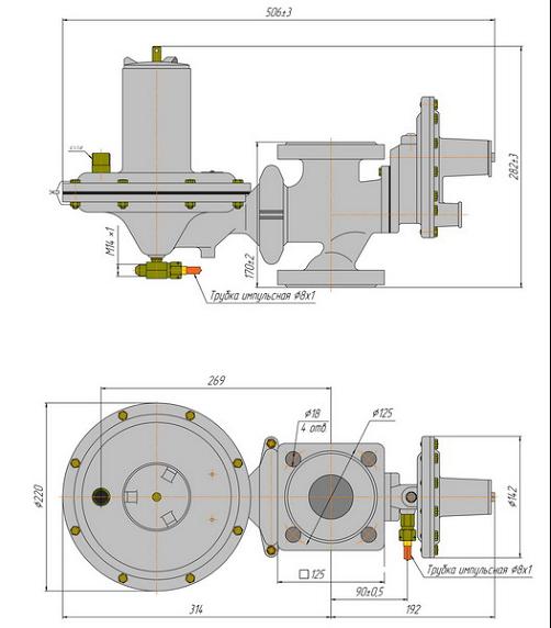 | Диапазон входного давления, МПа | 0,05–0,6 | 0,05–1,2 | |||
